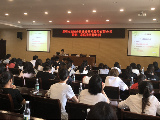 为建设文明家庭,弘扬中华传统家庭美德,公司于2019年5月17日邀请云南澜湄律师事务所吴静园律师,为公司及下属子公司全体员工开展婚姻家庭普法培训讲座。讲座围绕婚姻的效力、夫妻关系、离婚、收养、反家庭暴力五方面展开,通过真实案例的剖析,从专业的角度帮助员工以正确的视角面对和处理婚姻中易发生的问题。本次培训加深了全体员工对婚姻家庭相关法律、法规的认识,同时提高了员工的自我保护意识。