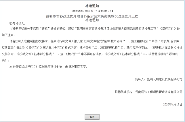 昆明市市容改造提升项目15条示范大街南绕城段改造提升工程补遗通知
