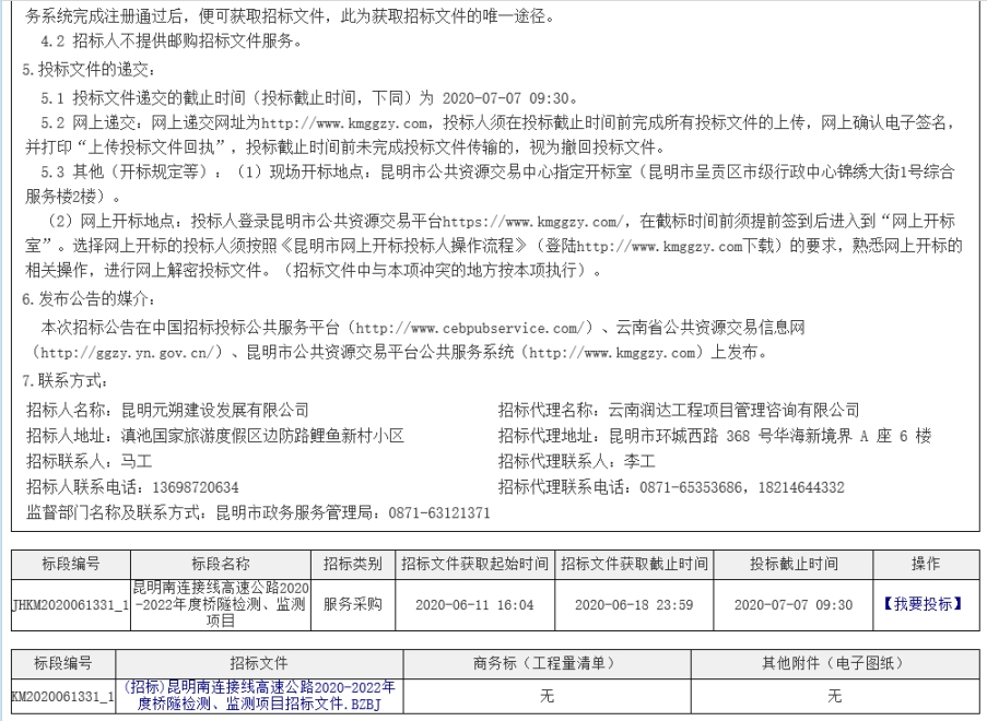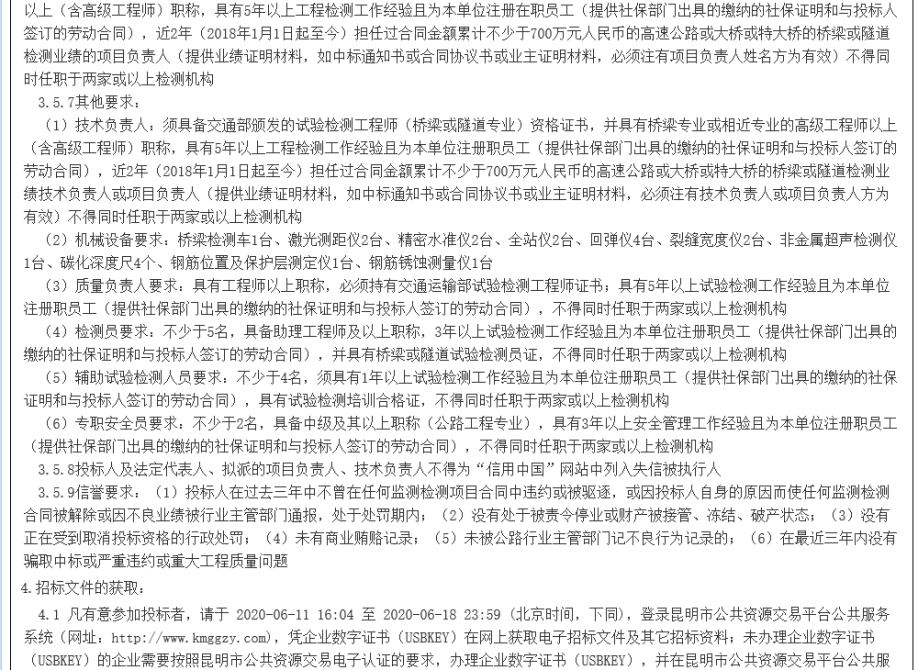 昆明南连接线高速公路2020-2022年度桥隧检测、监测项目招标公告
