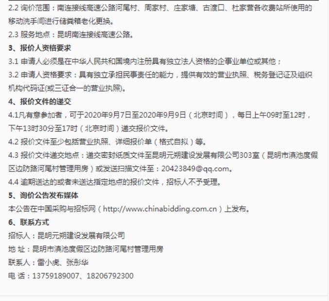 昆明元朔建设发展有限公司移动卫生间储粪箱老化更换市场询价公告