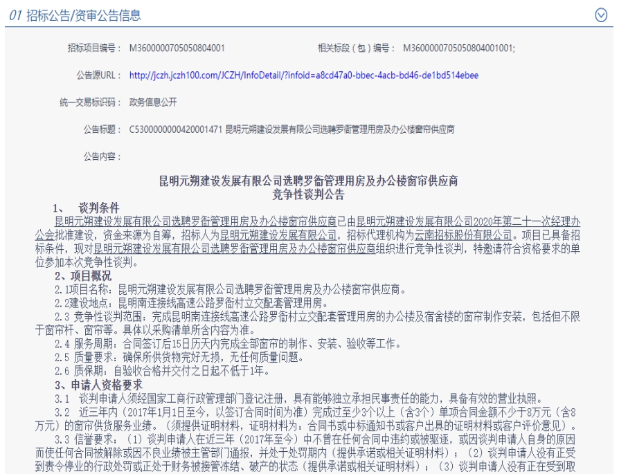 昆明元朔建设发展有限公司选聘罗衙管理用房及办公楼窗帘供应商市场询价公告