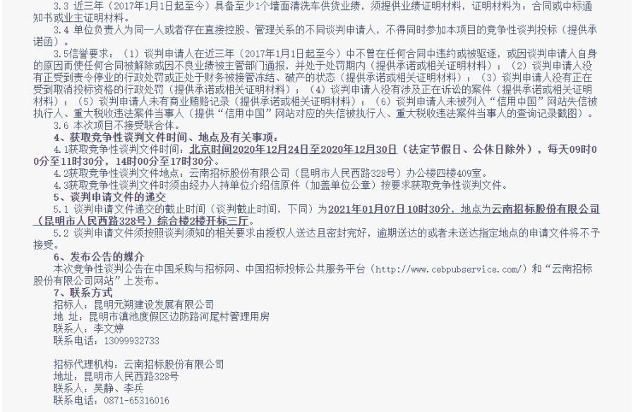 昆明元朔建设发展有限公司墙面清洗车采购项目竞争性谈判公告