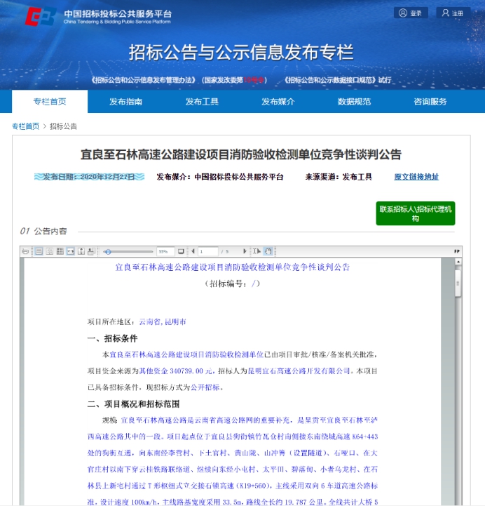 宜良至石林高速公路建设项目消防验收检测单位竞争性谈判公告