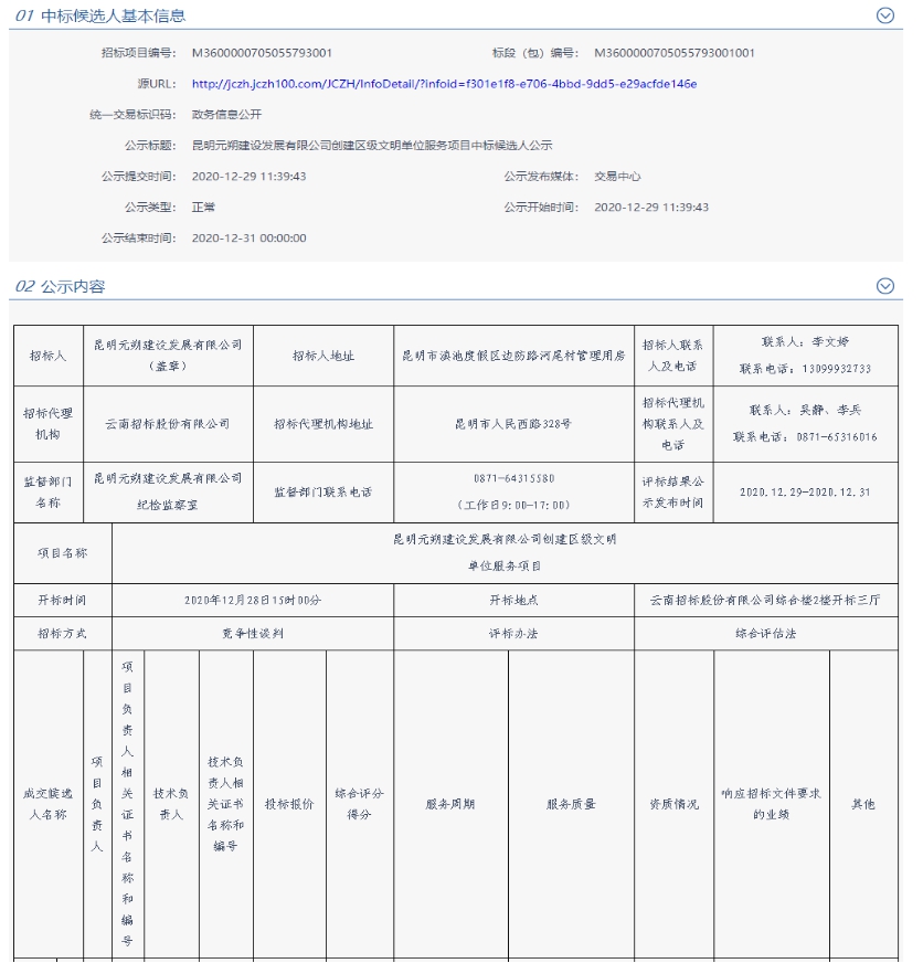 昆明元朔建设发展有限公司创建区级文明单位服务评标结果公示