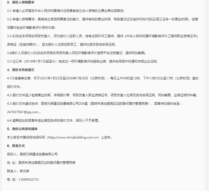 昆明元朔建设发展有限公司河尾村立交匝道改造项目环境影响评价咨询服务询价公告