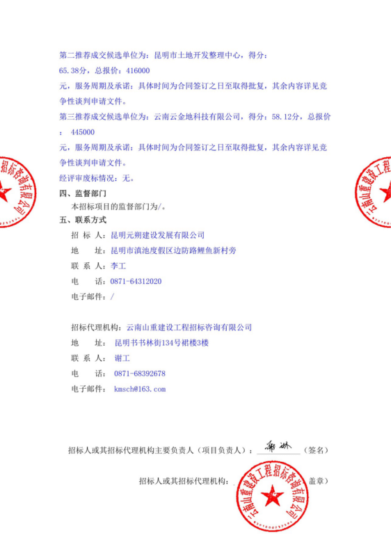 昆明南连接线高速公路河尾村立交新增匝道工程项目土地预审及调规技术服务评标结果公示