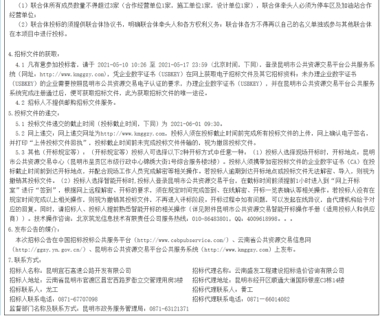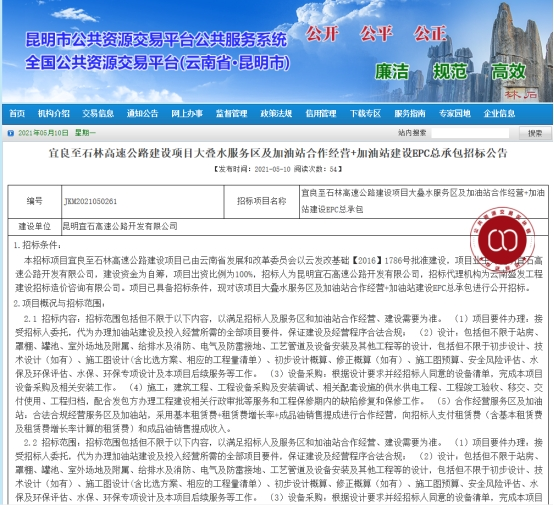 宜良至石林高速公路建设项目大叠水服务区及加油站合作经营+加油站建设EPC总承包招标公告