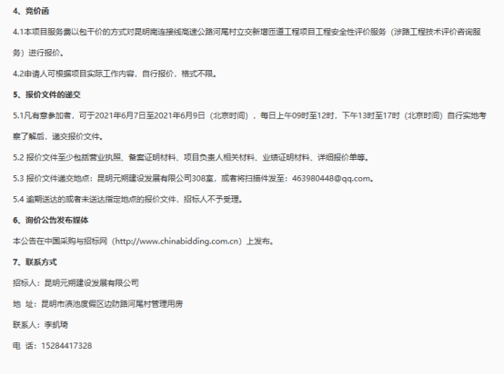 昆明南连接线高速公路河尾村立交新增匝道工程项目工程安全性评价服务市场询价公告