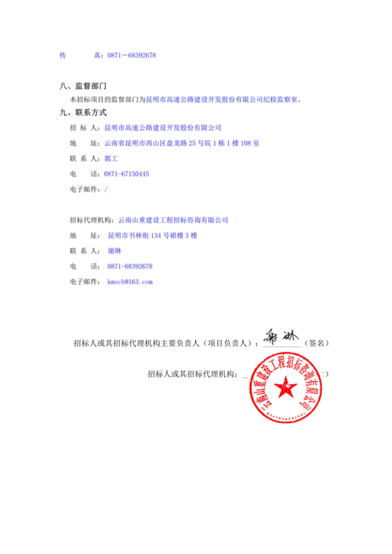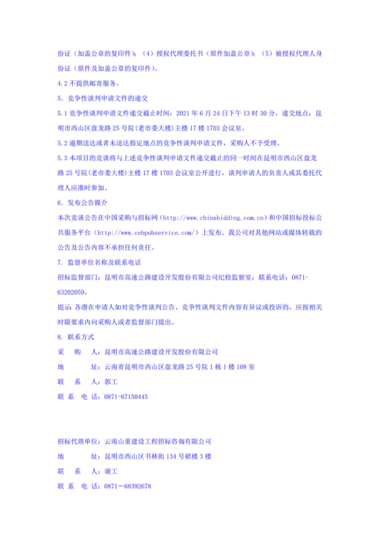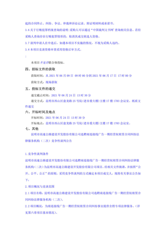 昆明市高速公路建设开发股份有限公司选聘南连接线广告一期经营权租赁合同纠纷法律服务机构(二次)竞争性谈判公告