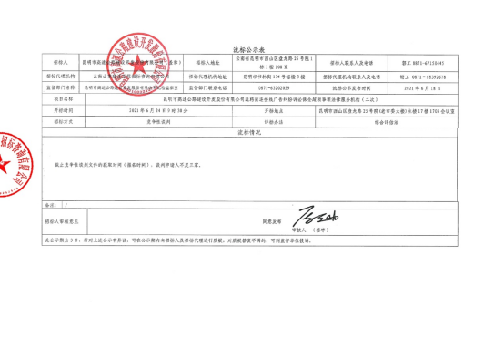 昆明市高速公路建设开发股份有限公司选聘南连接线广告纠纷诉讼保全超额事项法律服务机构(二次)流标公示