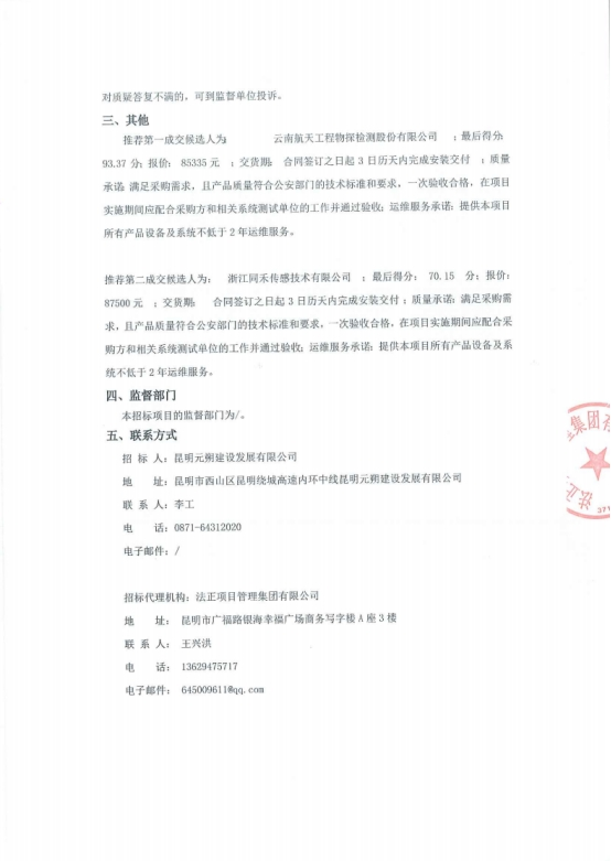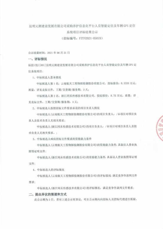 昆明元朔建设发展有限公司采购养护信息化平台人员智能定位及车辆GPS定位系统项目评标结果公示
