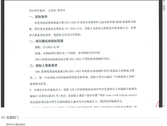 昆明南连接线高速公路2021-2023年度机电系统维护项目招标公告