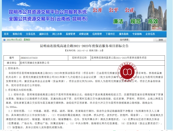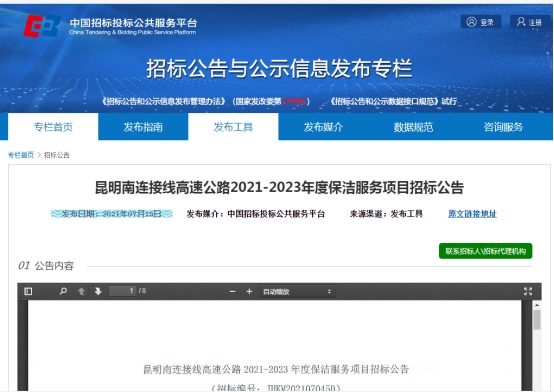 昆明南连接线高速公路2021-2023年度保洁服务项目招标公告