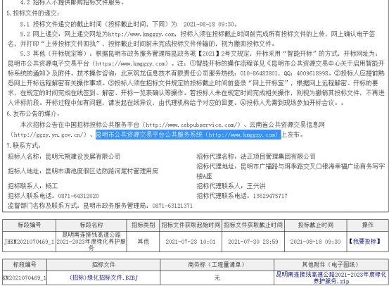昆明南连接线高速公路2021-2023年度绿化养护服务招标公告