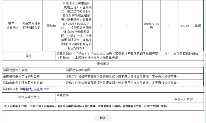 昆明绕城高速公路东南段运营期10KV供电线路运营维护项目评标结果公示