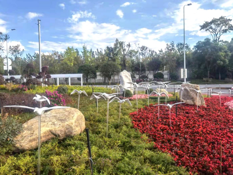 在美化南连接线方面,积极开展市容环境提升改造项目,已完成立交匝道33956个花箱苗木种植工作,并持续督促施工单位做好项目苗木、花卉管养,确保COP15期间苗木花卉达到盛花期。