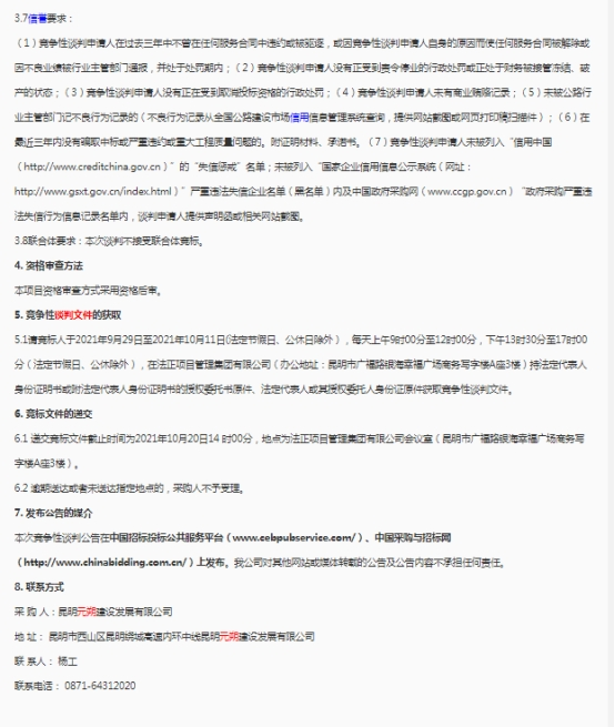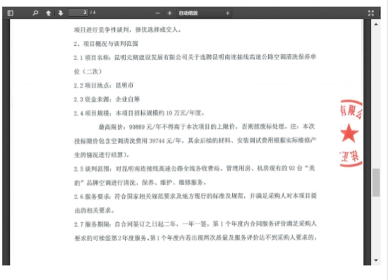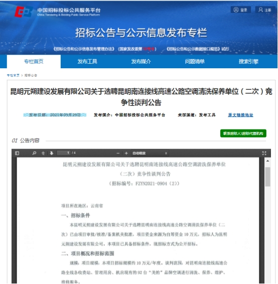 昆明元朔建设发展有限公司关于选聘昆明南连接线高速公路空调清洗保养单位(二次)竞争性谈判公告