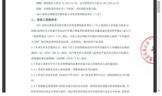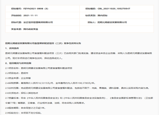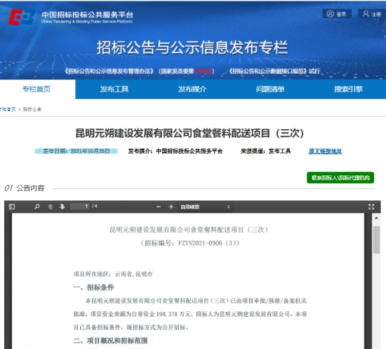 昆明元朔建设发展有限公司食堂餐料配送项目(三次)竞争性谈判公告