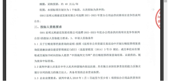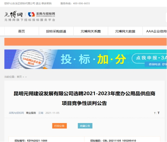 昆明元朔建设发展有限公司选聘2021-2023年度办公用品供应商项目竞争性谈判公告
