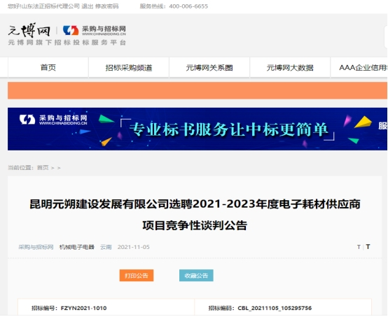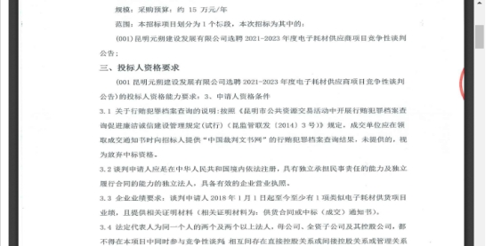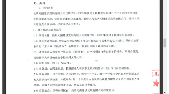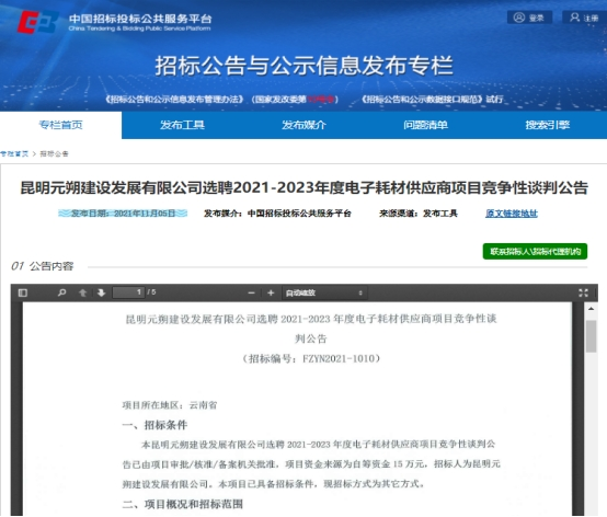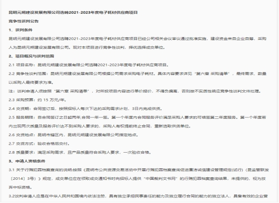 昆明元朔建设发展有限公司选聘2021-2023年度电子耗材供应商项目竞争性谈判公告