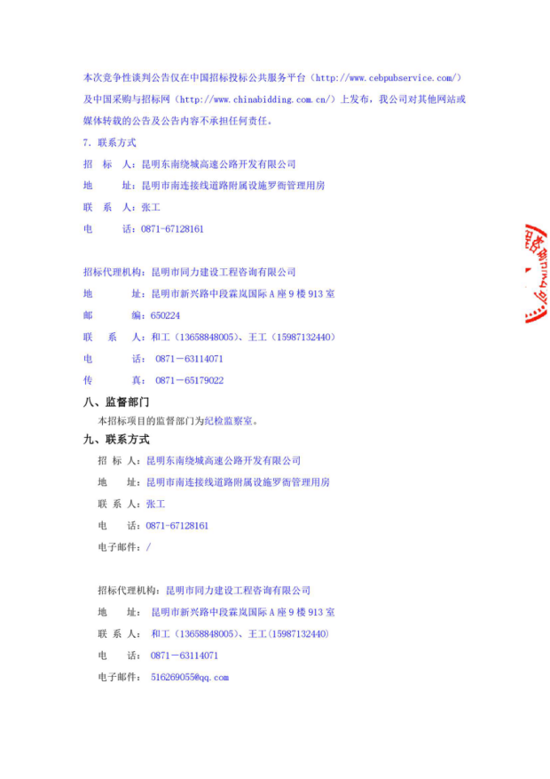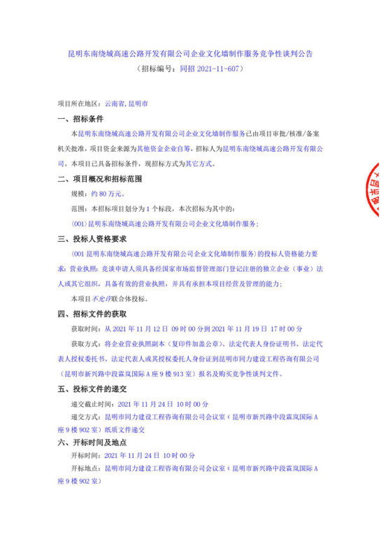 昆明绕城高速公路东南段运营期企业文化墙制作服务竞争性谈判公告