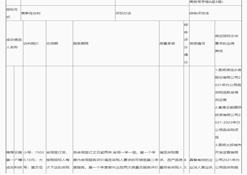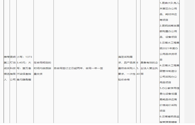 昆明元朔建设发展有限公司选2021-2023年度办公用品供应商项目评标结果公示