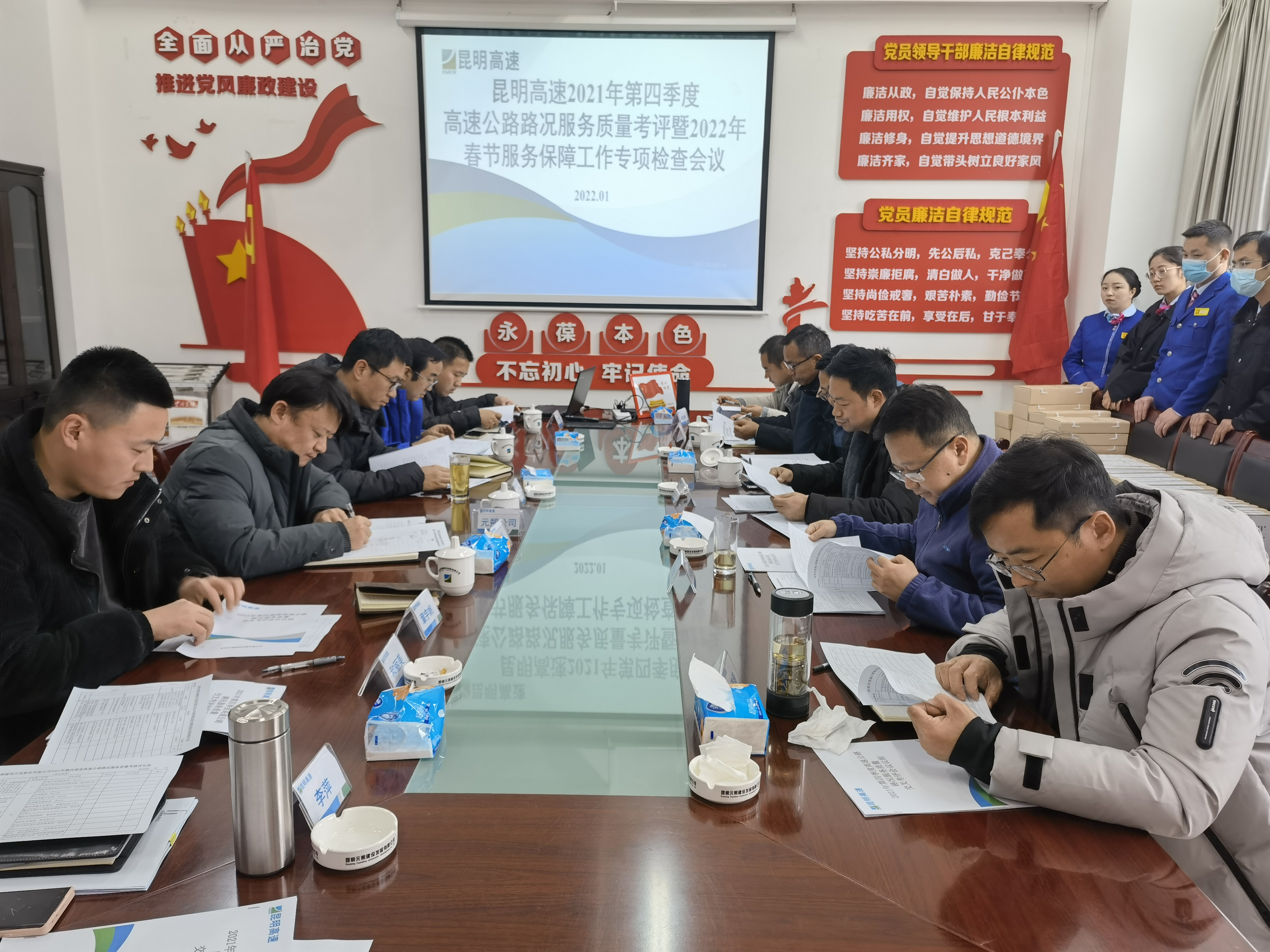 2022年1月17日至21日,由公司公路运营部牵头对所辖南连接线高速公路、东南绕城高速公路、宜石高速公路、石泸高速公路开展了2021年第四季度路况服务质量交叉考评暨2022年春节服务保障工作专项检查。
