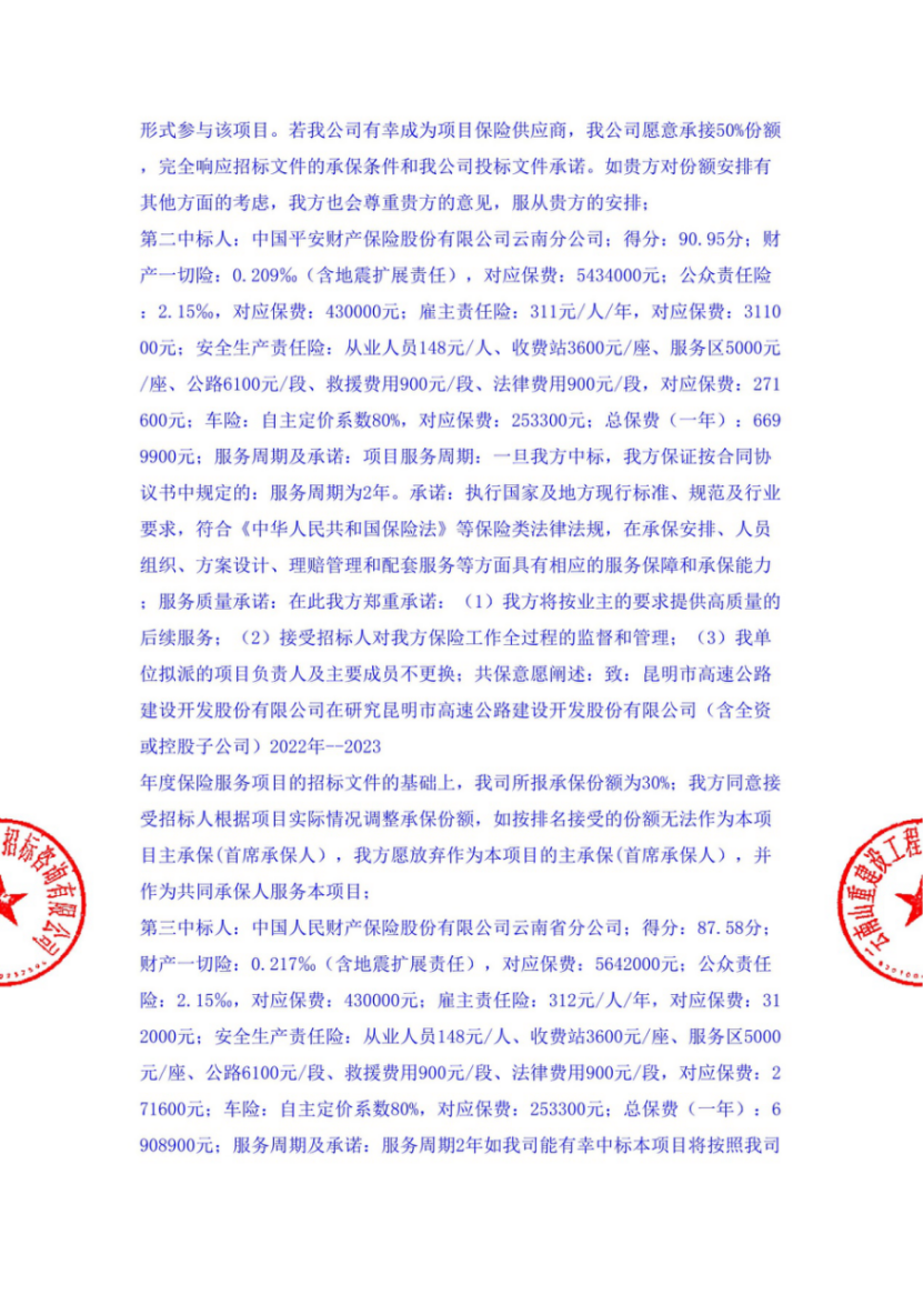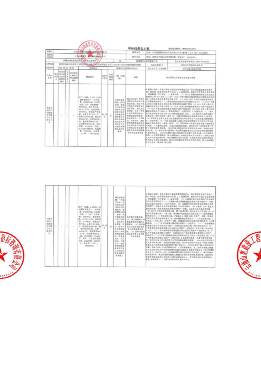 昆明市高速公路建设开发股份有限公司(含全资或控股子公司)2022年—2023年度保险服务项目中标结果公示