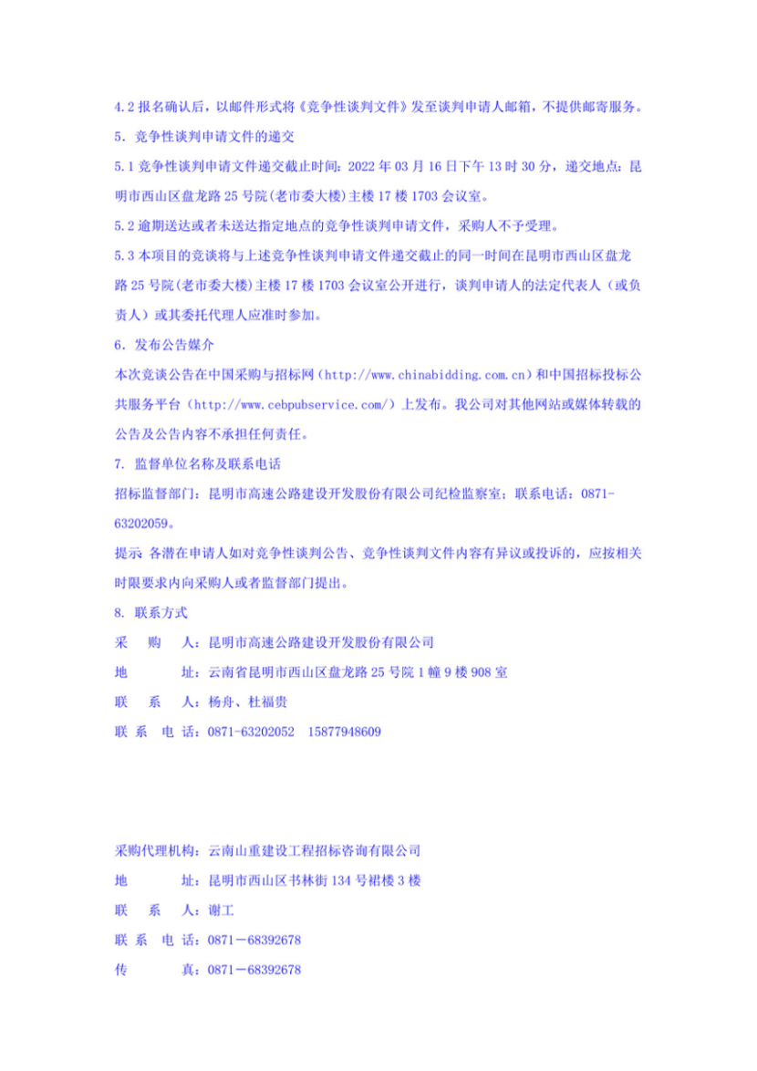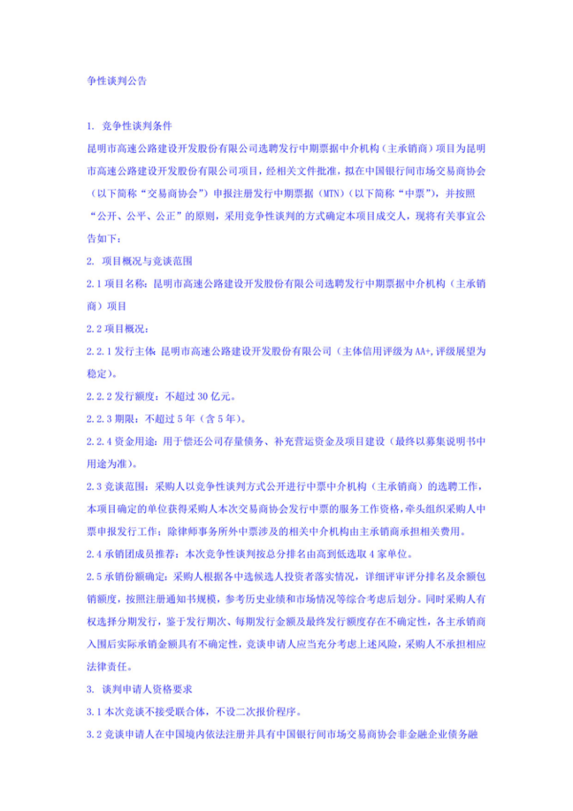 昆明市高速公路建设开发股份有限公司选聘发行中期票据中介机构(主承销商)项目竞争性谈判公告