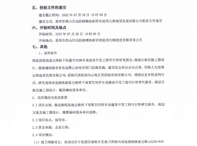 南连接线高速公路桥下闲置空间停车场建设开发工程可行性研究报告、规划方案及施工图设计、概算编制服务单位选聘竞争性谈判公告