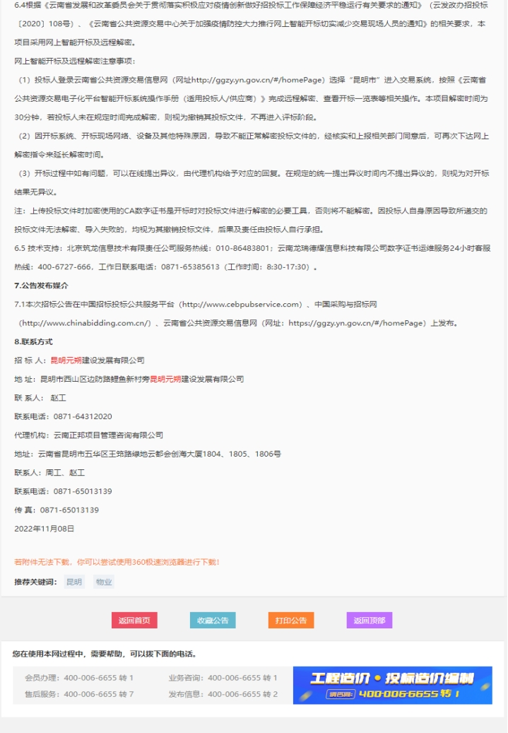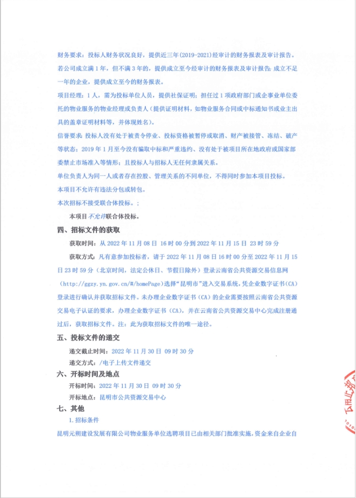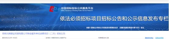 昆明元朔建设发展有限公司物业服务单位选聘项目(二次)招标公告