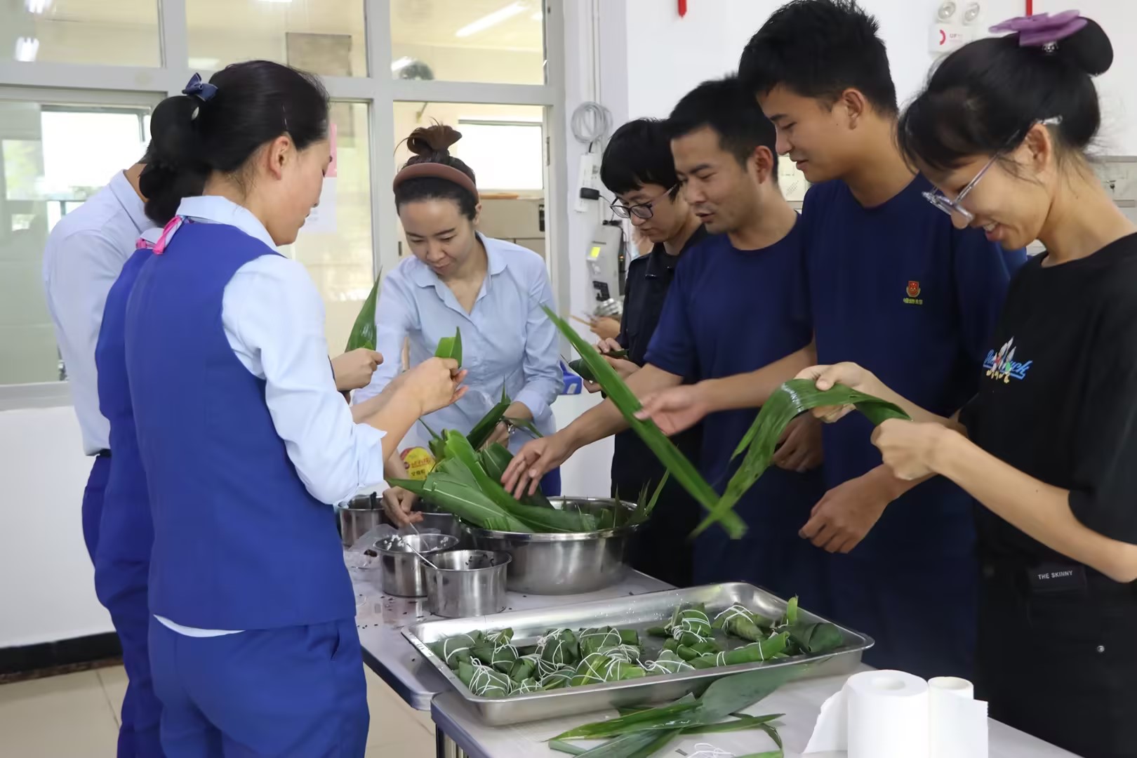 在团队大比拼环节,粽香四溢,参与比赛的小组成员争先恐后地展现包粽子的技巧,双手快速翻动,将一粒粒糯米紧紧包裹在粽叶里,在欢声笑语中一盘盘精美鲜绿、飘香四溢的粽子接连出炉,裁判根据粽子数量和美观度综合评分,评选出一、二、三等奖和参与奖。