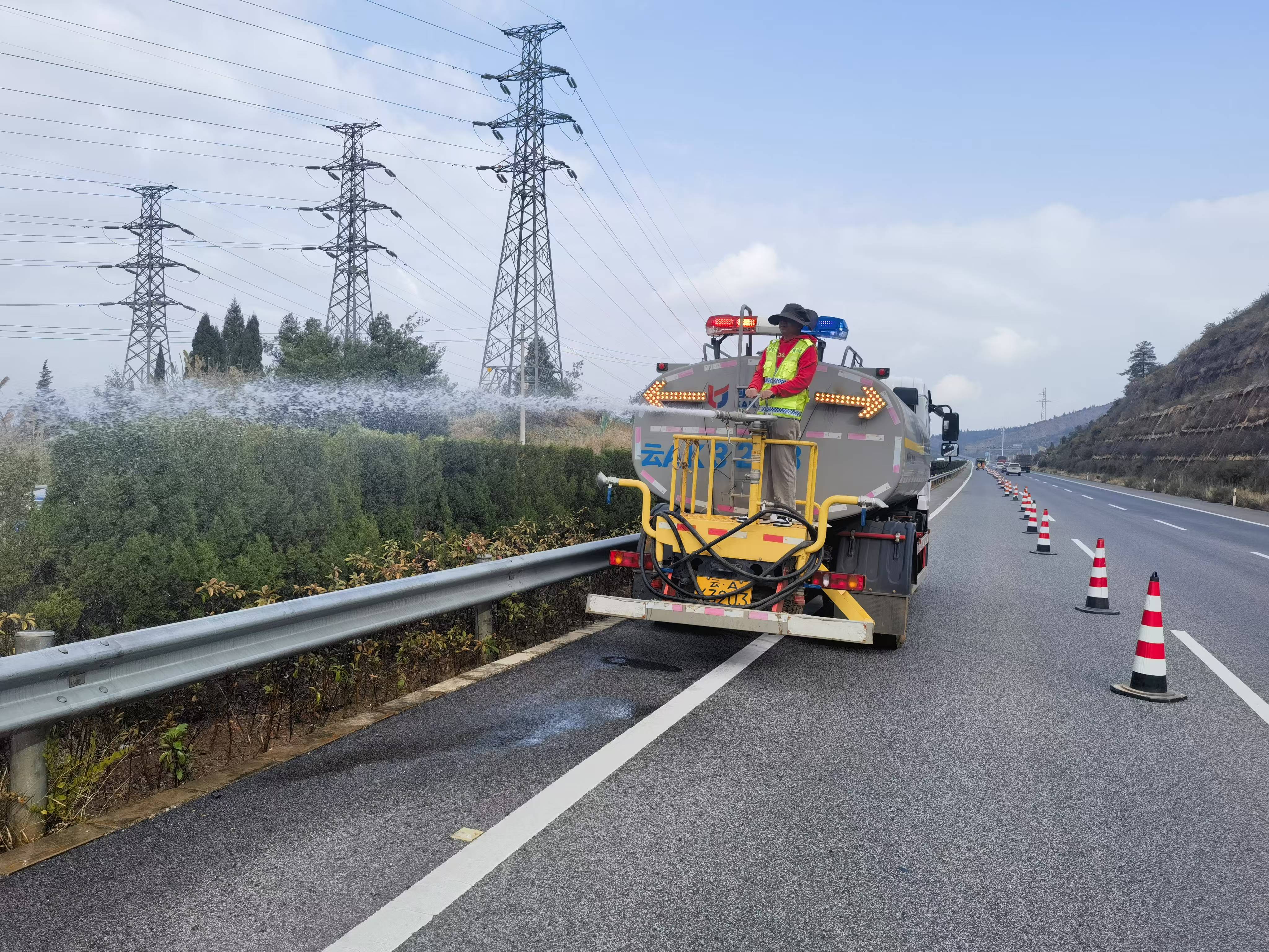 在道路养护方面,元朔公司常抓不懈,落实“日常+集中”养护法,将养护工作融入日常管理。每日安排保洁人员和机械清扫车清理路面垃圾、落叶及边沟淤泥,同时定期清洗隔音屏、隧道防火板等设施;对全线绿化实施“一草一策”管养。同时,每季度针对季节性问题开展计重专项行动,如雨季排水系统堵塞、冬季除冰等。