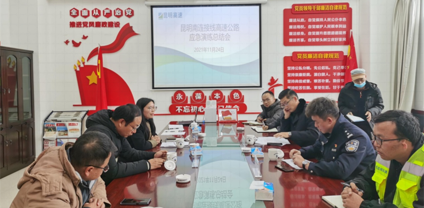 2021年11月24日,昆明元朔建设发展有限公司联合昆明市公安局交通警察支队十一大队、昆明市公路路政管理支队机动大队组织开展南连接线高速公路交通事故应急演练。