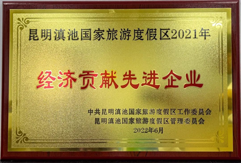 资源开发公司荣获“昆明滇池国家旅游度假区2021年度经济贡献先进企业”称号